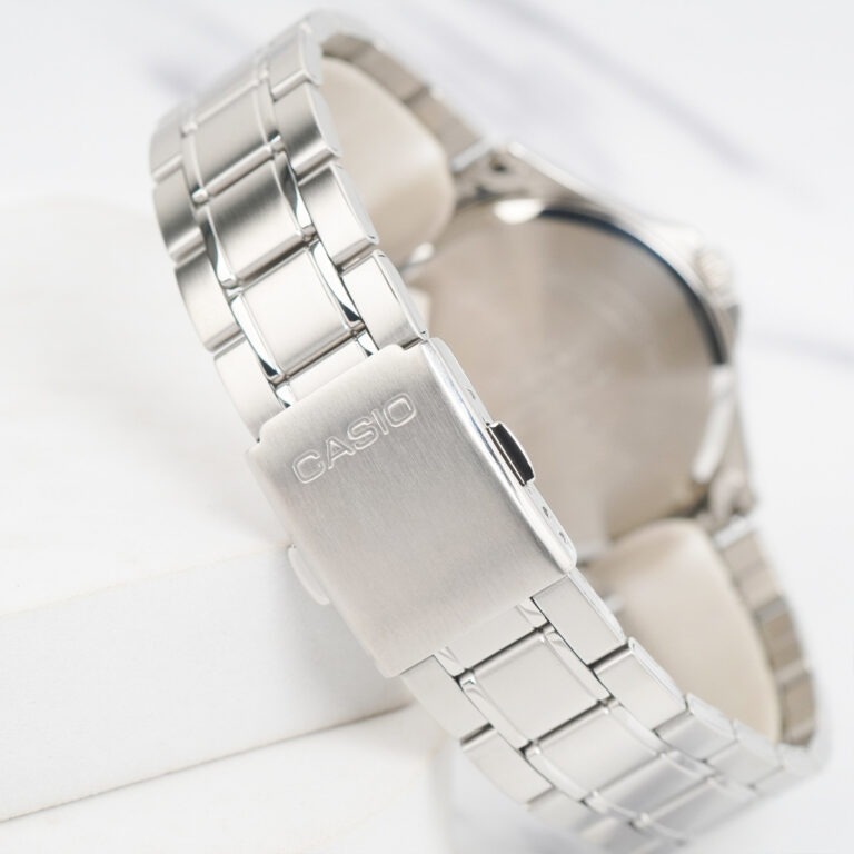 Bên cạnh mặt số xanh độc đáo, chiếc Đồng Hồ Casio Nam MTS-RS100D-3AVDF còn ghi điểm nhờ bộ vỏ và dây đeo được chế tác từ thép không gỉ 316L cao cấp. Các mắt xích dây được hoàn thiện phay xước xen kẽ đánh bóng gương tỉ mỉ, tạo nên vẻ ngoài chắc chắn và sang trọng.
