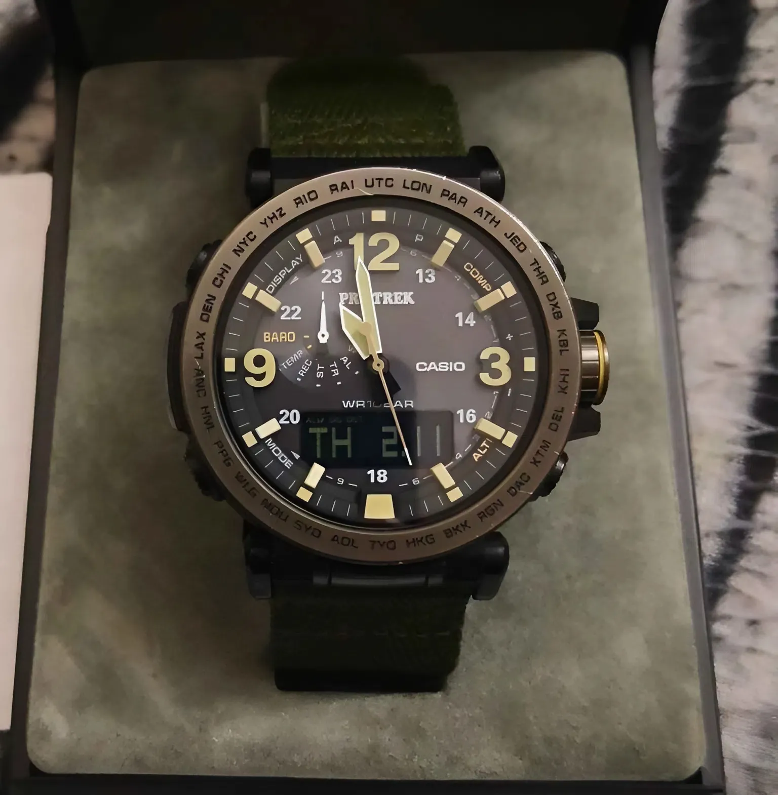 Trong thế giới của những người đam mê xê dịch và chinh phục những đỉnh cao, dòng Pro Trek luôn là cái tên bảo chứng cho sự tin cậy. Đặc biệt, Đồng Hồ Casio Nam PRG-600YB-3DR xuất hiện như một sự giao thoa hoàn hảo giữa công nghệ cảm biến tiên tiến và phong cách thời trang quân đội bụi bặm. Đây không chỉ là một công cụ đo lường thời gian, mà là một thiết bị sinh tồn thực thụ dành cho những quý ông yêu thích tự do.