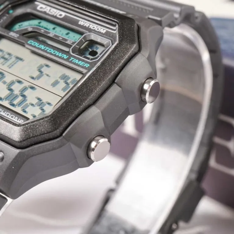Thiết kế mặt vuông góc cạnh: Lấy cảm hứng từ những dòng đồng hồ quân đội, mặt vuông của WS-1600H mang đến sự khỏe khoắn, giúp cổ tay phái mạnh trông dày dặn và mạnh mẽ hơn.
