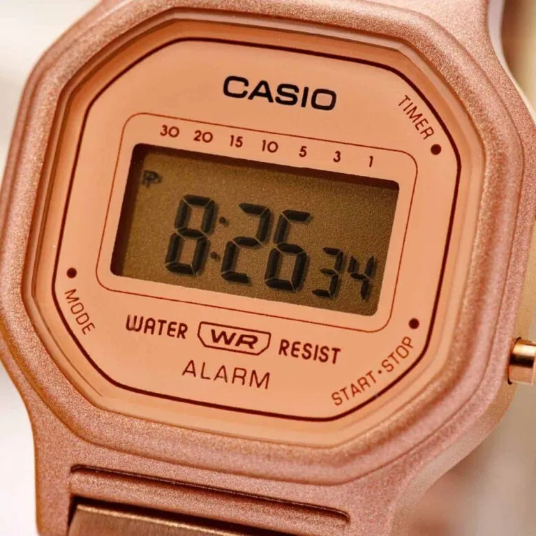 Điểm chạm đầu tiên khiến bất cứ cô nàng nào cũng phải xao xuyến chính là tông màu chủ đạo của sản phẩm. Toàn bộ vỏ và dây đeo của Đồng Hồ Casio Nữ LA-11WR-5ADF được xử lý bằng công nghệ mạ ion màu vàng hồng cao cấp.