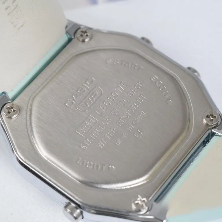 Màu sắc trẻ trung: Không chọn những tông màu truyền thống như đen hay nâu, Casio sử dụng màu xanh Mint pastel dịu mắt. Đây là gam màu đại diện cho sự tươi mới, trẻ trung và đặc biệt "nịnh" da tay.