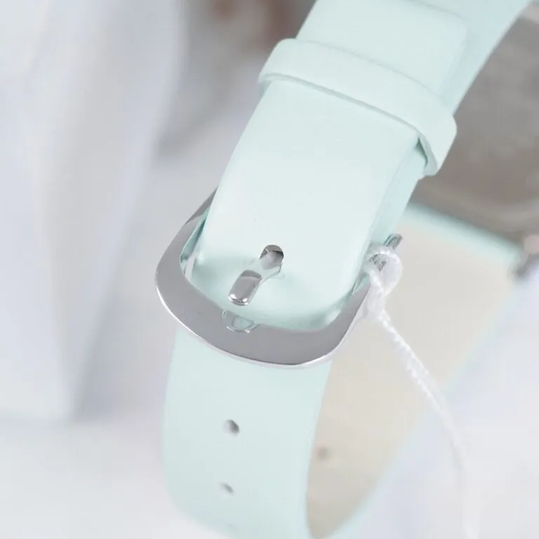 Chất liệu dây da cao cấp: Dây đeo được làm từ chất liệu da mềm mại, nhẹ nhàng, tạo cảm giác thoải mái khi đeo suốt cả ngày dài. Sự kết hợp giữa vỏ kim loại màu bạc và dây da xanh tạo nên một tổng thể vừa thanh lịch vừa phá cách.