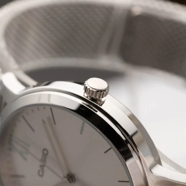 Điểm nhấn khác biệt nhất của đồng hồ Casio nữ LTP-E157M-7ADF so với các dòng dây da hay dây mắt xích truyền thống chính là bộ dây lưới (Mesh Band) màu bạc sáng bóng. Dây lưới không chỉ mang lại vẻ ngoài hiện đại, bắt mắt mà còn sở hữu ưu điểm vượt trội về sự thoải mái. Với kết cấu từ hàng nghìn mắt lưới nhỏ li ti, sợi dây ôm sát cổ tay một cách mềm mại, không gây bí bách hay để lại vết hằn trên da như các loại dây kim loại đặc.