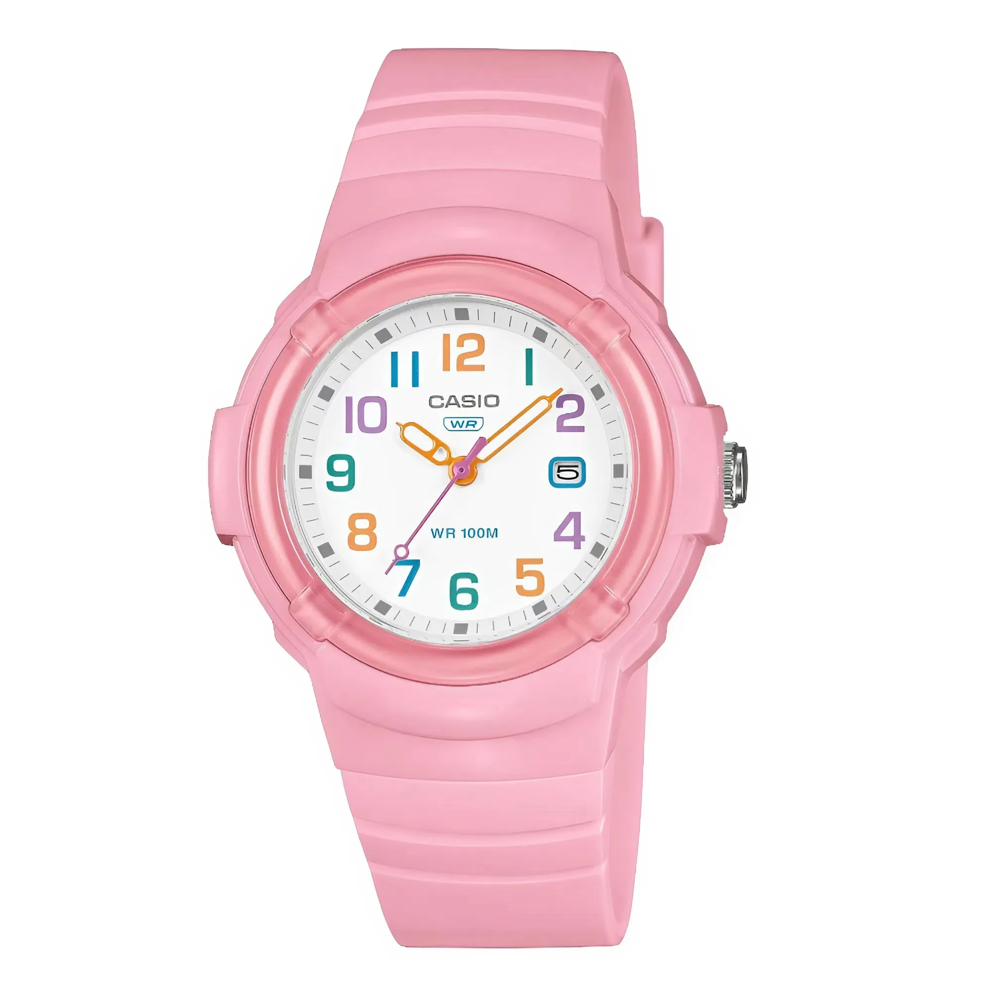 Điểm ấn tượng nhất của đồng hồ Casio nữ LX-800H-4AVDF chính là sự đồng nhất về màu sắc. Không giống như những phiên bản phối trắng-hồng, mẫu 4AVDF bao phủ toàn bộ phần vỏ và dây đeo bằng tông màu hồng Pastel tươi sáng.