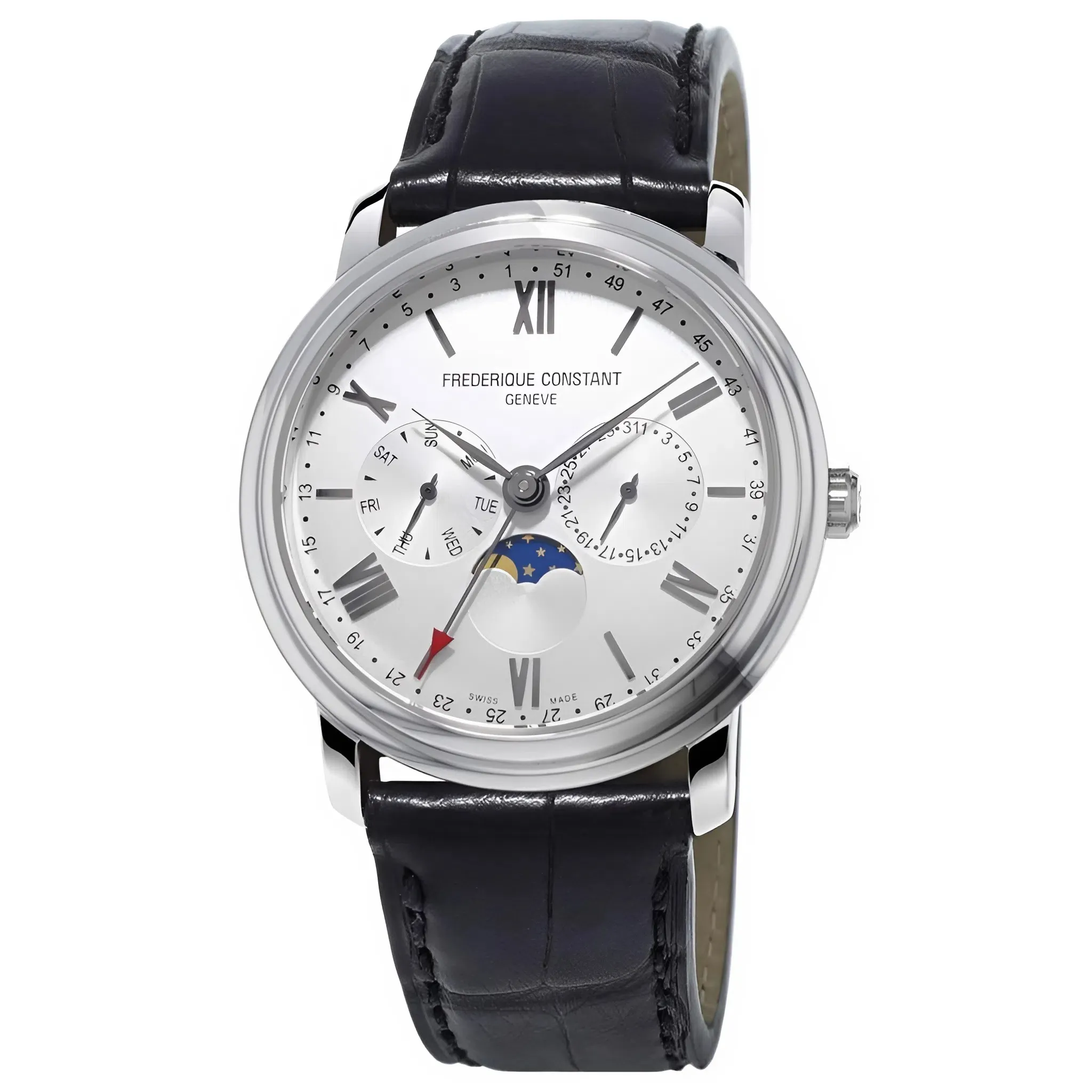Duy Trì Độ Phức Tạp Với Giá Trị Tối Ưu: Để tạo ra một chiếc đồng hồ cơ khí tích hợp đầy đủ các chức năng Lịch Ngày, Thứ, Tuần và Moonphase sẽ đòi hỏi một mức giá rất cao. Máy Quartz giúp Frederique Constant hiện thực hóa sự phức tạp này với độ chính xác cao hơn và mức giá tiếp cận tốt hơn cho người tiêu dùng.