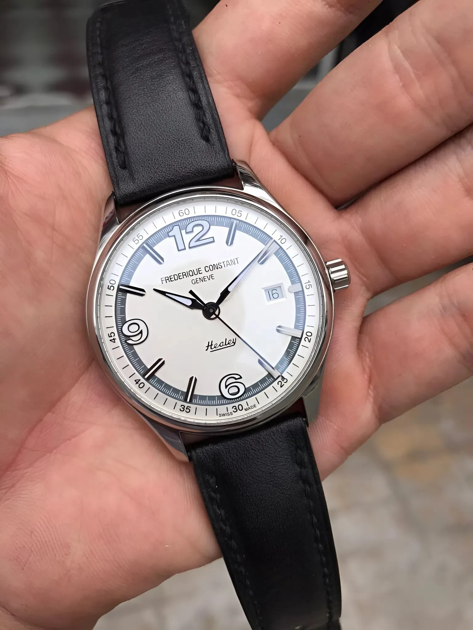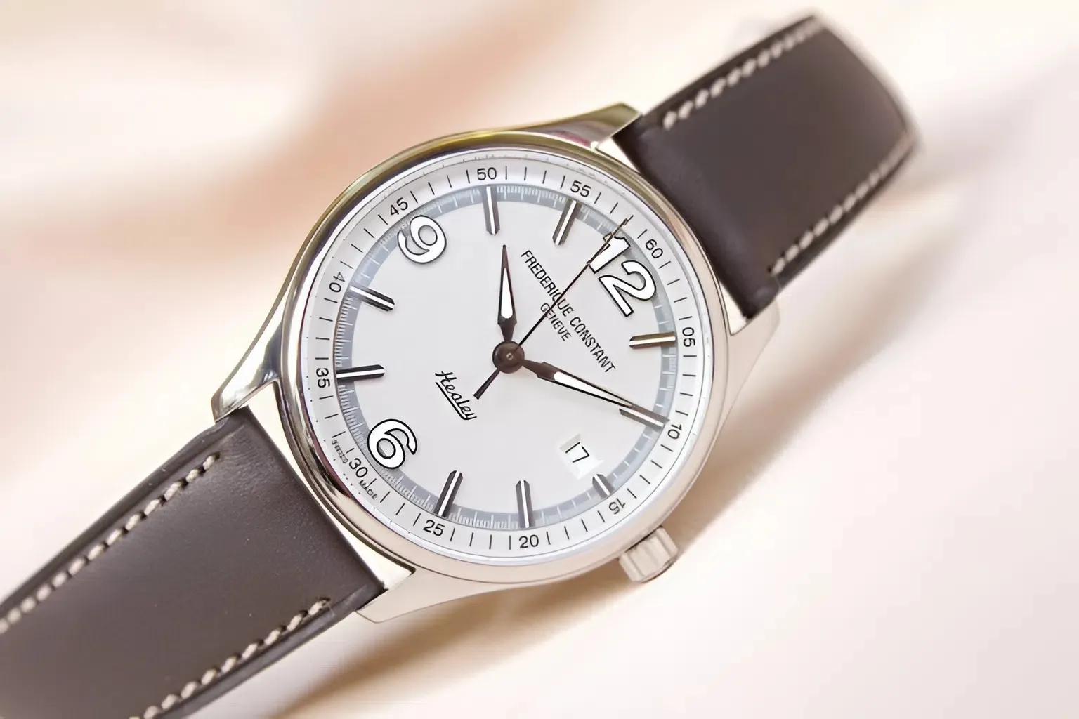 Thương hiệu Frederique Constant nổi tiếng với việc sản xuất đồng hồ đạt chuẩn Swiss Made, thể hiện qua từng chi tiết hoàn thiện.