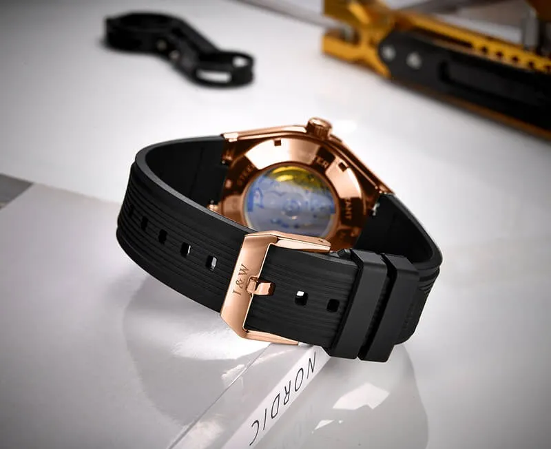 Phá vỡ quy tắc "đồng hồ sang trọng phải đi với dây da hoặc dây thép", mẫu Đồng Hồ I&W Carnival 42mm Nam 55851G-VH-DCS-X trang bị bộ dây cao su đen cao cấp. Đây là một bước đi thông minh nhằm mang lại: