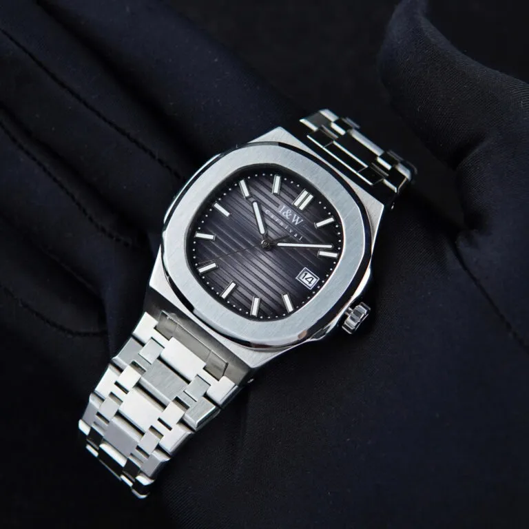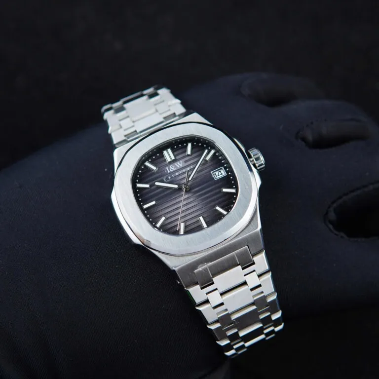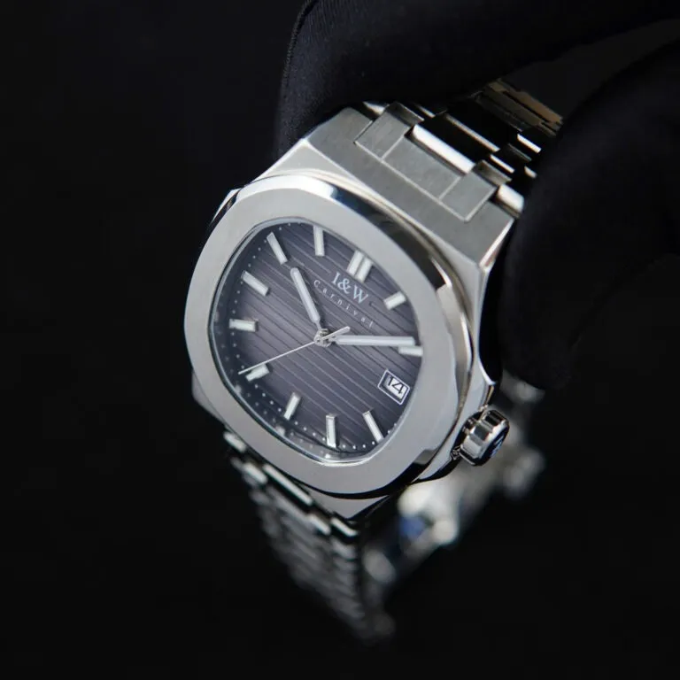 Sự khác biệt lớn nhất của Đồng Hồ I&W Carnival 42mm Nam 721GT-VT-DX nằm ở vành bezel hình bát giác được bo tròn mềm mại ở các góc. Đây là kiểu dáng "Nautilus" trứ danh, biểu tượng cho sự sang trọng và phong cách sống thượng lưu. Với lớp vỏ bạc sáng bóng được đánh bóng tỉ mỉ, chiếc đồng hồ này phản chiếu ánh sáng cực tốt, tạo nên vẻ ngoài mạnh mẽ nhưng vẫn đầy tinh tế.