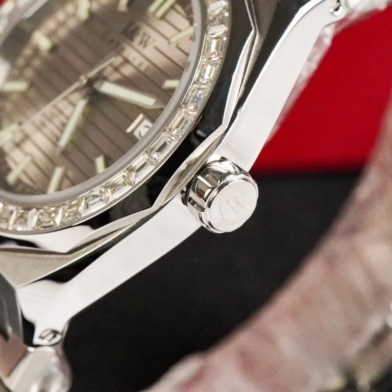 Kỹ thuật đính đá Baguette đòi hỏi độ chính xác cực cao để các viên đá xếp khít nhau, tạo thành một dải sáng liên tục và sắc lạnh. Sự lấp lánh của đá quý trên nền thép sáng bóng không chỉ làm tăng giá trị cho chiếc đồng hồ mà còn là tuyên ngôn về đẳng cấp thượng lưu của chủ nhân.