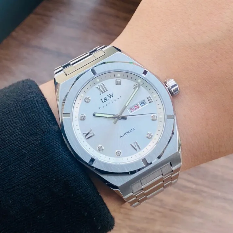 Với đường kính 42mm, Đồng Hồ I&W Carnival 42mm Nam 751G-VT-T hướng đến những quý ông có cổ tay từ 16cm trở lên. Đây là kích thước tiêu chuẩn của dòng Luxury Sport, tạo độ đầm tay chắc chắn nhưng vẫn đủ gọn gàng để chui vừa ống tay áo sơ mi. Thiết kế dây đeo tích hợp (Integrated Bracelet) giúp đồng hồ ôm sát cổ tay, mang lại cảm giác đeo vô cùng thoải mái suốt ngày dài.