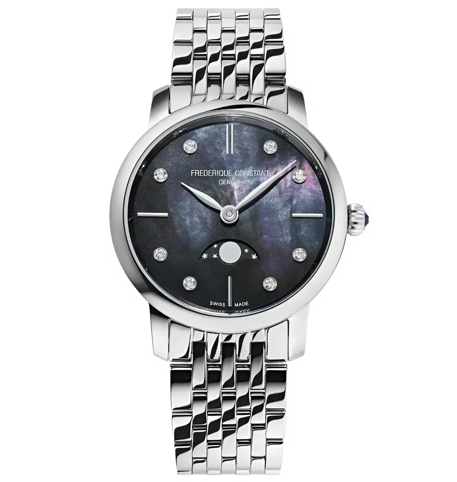 Kết luận: Frederique Constant Classics Delight Moonphase FC-206MPBD1S6B là một tuyên ngôn về vẻ đẹp lãng mạn và kỹ thuật chế tác chính xác. Nó đại diện cho sự sang trọng, tinh tế và một chút thơ mộng, xứng đáng là món phụ kiện không thể thiếu trong bộ sưu tập của quý cô hiện đại, thành đạt.