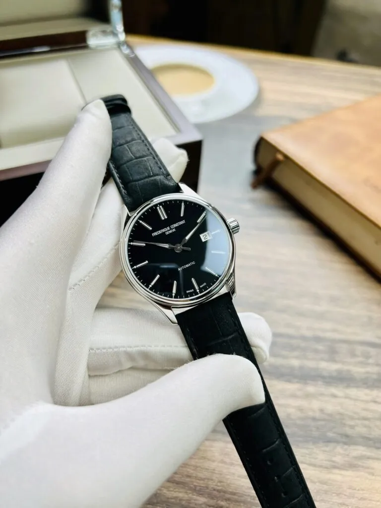 Dòng chữ “SWISS MADE” ở vị trí 6 giờ không chỉ là dấu ấn xuất xứ, mà còn là cam kết về chất lượng và độ chính xác. Frederique Constant sản xuất, lắp ráp và kiểm định tại Geneva – trung tâm của nghệ thuật chế tác đồng hồ Thụy Sĩ.